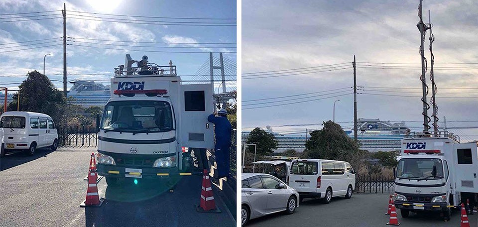 2月3日夜、巨大クルーズ船のダイヤモンド・プリンセス号が横浜港に到着。新型コロナウイルス感染症に対する緊張感が高まりつつあるなか、現地にはKDDI運用本部のスタッフも駆けつけていた。