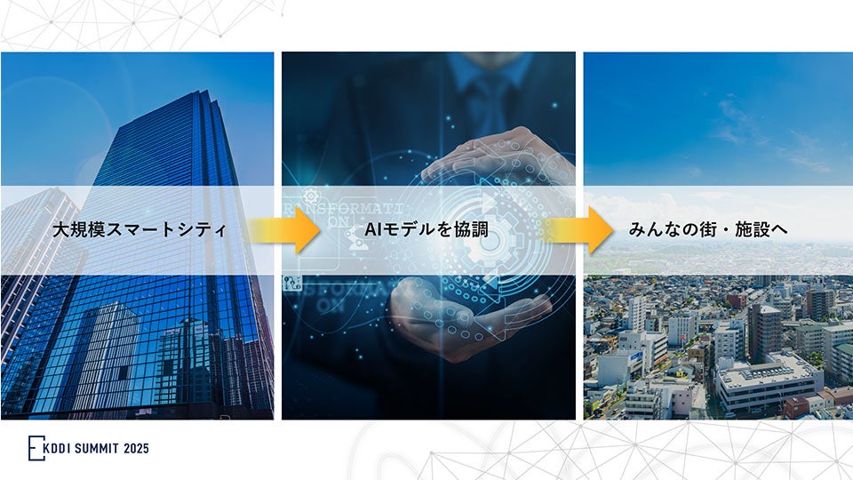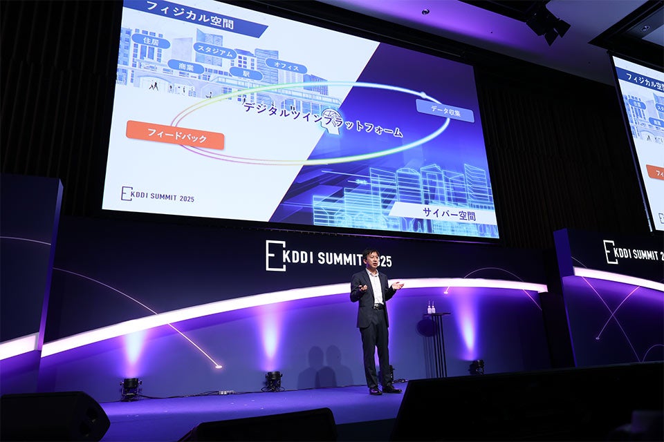 2025年10月28日から29日にかけて、TAKANAWA GATEWAY CITY(高輪ゲートウェイシティ)の会場とオンラインのハイブリッド形式で開催された、KDDIグループ最大級のビジネスイベント「KDDI SUMMIT 2025」。その2日目、KDDI代表取締役執行役員副社長の桑原 康明が、「共創でひらく未来~課題解決を次の競争力へ~」と題して、AI時代のビジネスプラットフォーム「WAKONX(ワコンクロス)」の進化について講演。日本特有の強みを活かした共創による社会課題解決をテーマに、都市と地域の課題への取り組み、AI時代のインフラ整備について説明しました。後半では、WAKONXの事業開発を担当する保科 康弘がスマートシティをテーマに、KDDI自身がTAKANAWA GATEWAY CITYで未来へ向けてどのような実験に取り組んでいるか、講演しました。