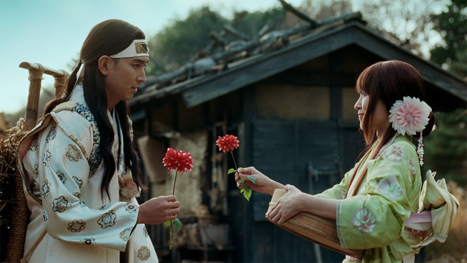 桃ちゃんこと桃太郎(松田翔太さん)が道端できれいな花を見つけ、かぐちゃんことかぐや姫(有村架純さん)にも見せてあげたい、と思うところからストーリーが始まります。