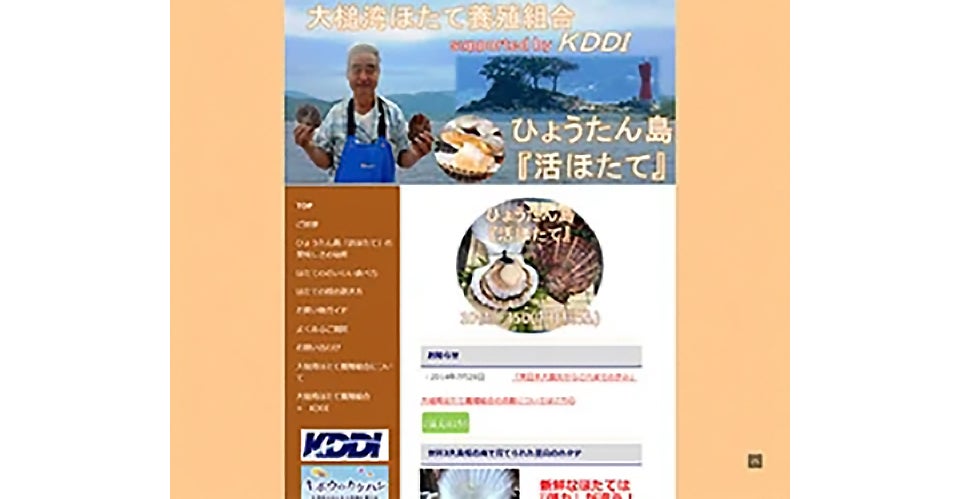 大槌町ほたて養殖組合のウェブサイト。養殖施設が流出し、震災後もFAXと携帯メールだけで受注していたなか、組合と一体となって構築