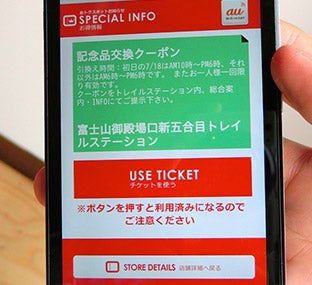富士山のエリア化と同時に、KDDIでは富士山を訪れる観光客のためのキャンペーンも実施している。富士山御殿場口新五合目にある「Mt.Fuji Trail Station(略称・トレステ)」がその舞台だ。今年の7月10日から9月7日までの期間限定オープンしているエリアで、アウトドアアイテムのショップや、御殿場市観光案内所、土産店などが併設されている。富士山登山の御殿場ルートの入り口であり、周辺の原生林の中のハイキングコースに出かけるのに便利な場所だ。