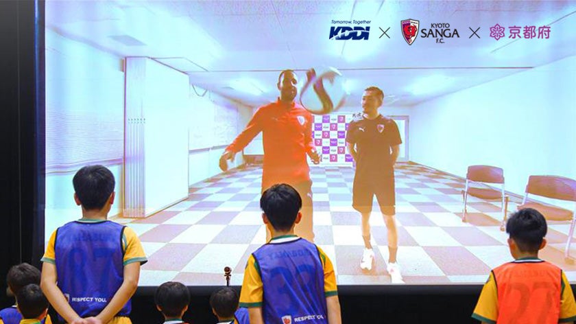 選手とコーチがいるサンガタウン城陽と各学校2カ所の計3カ所を、4K相当の高画質な映像で配信できる「空間自在ワークプレイス」と、衛星通信の「Starlink」でつなぐことにより、ボールタッチや身体の使い方も鮮明に確認でき、時間の取りづらい現役選手から複数地域への同時指導ができました。