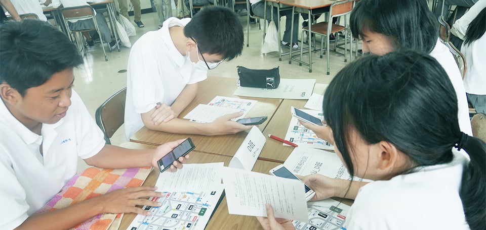 そのひとつが、2017年9月から行っている高校生向けのワークショップ型出前講座「スマホ de 防災リテラシー」。災害発生時に情報通信をライフラインとして有効活用してもらうための防災講座です。