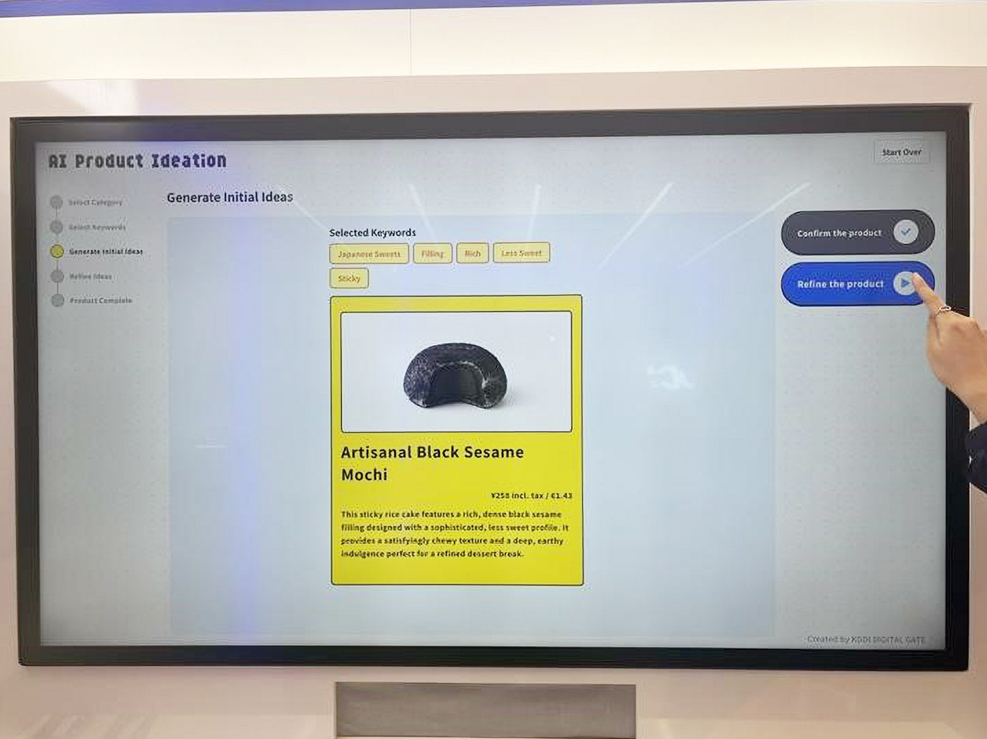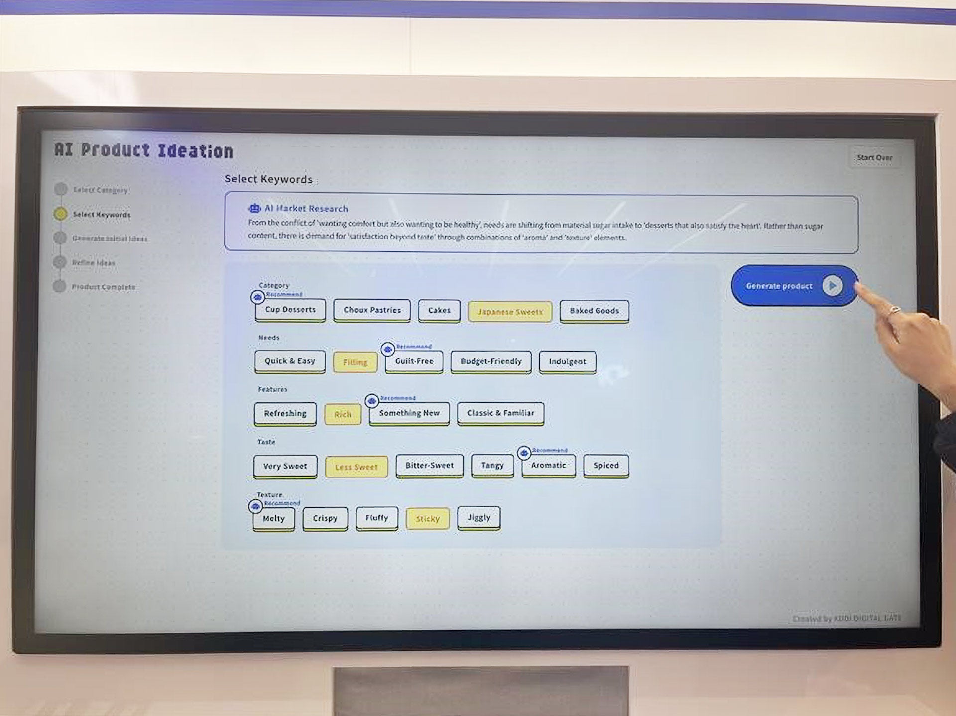 まずは画面上で「パン」や「デザート」などのカテゴリと、開発したい商品のキーワードを選びます。