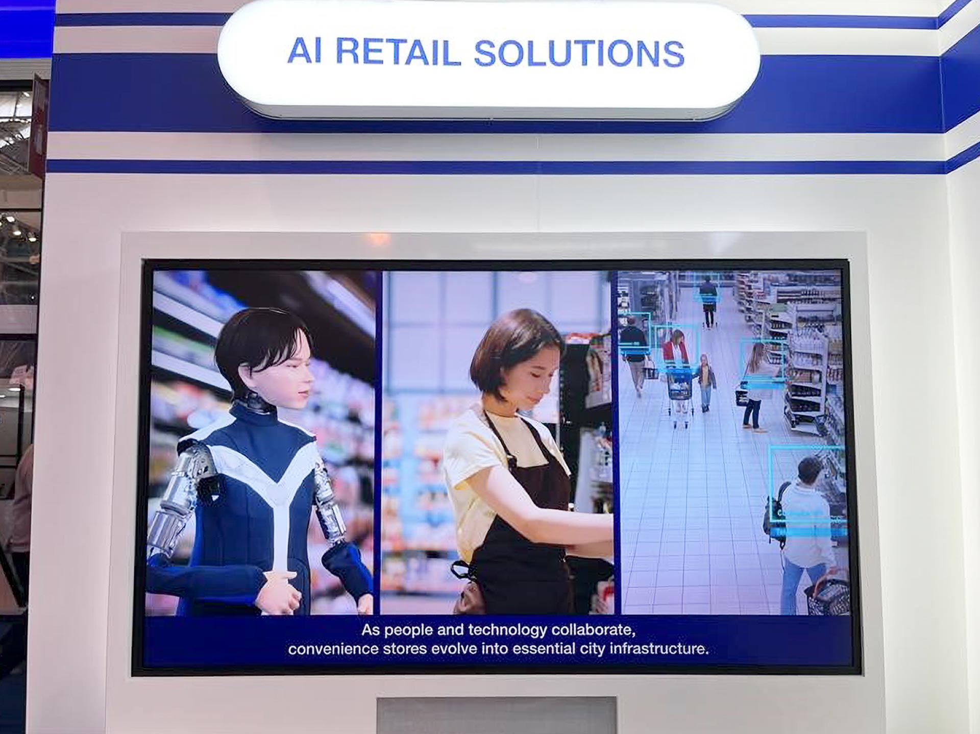 エリアの最後では、スタッフ支援、運営効率化、働き方改革という3つのテーマで、未来のリテールを動画で紹介していました。